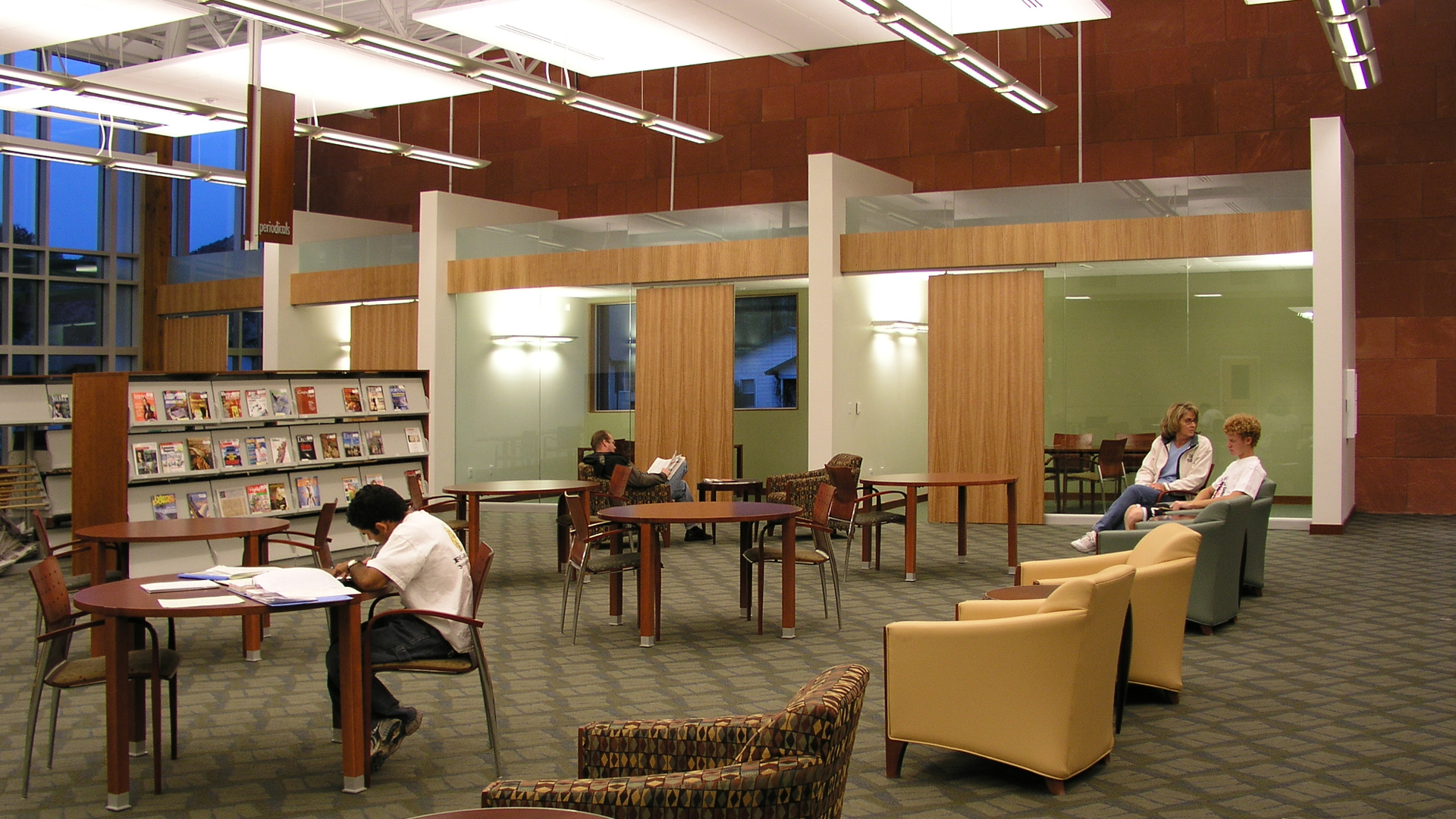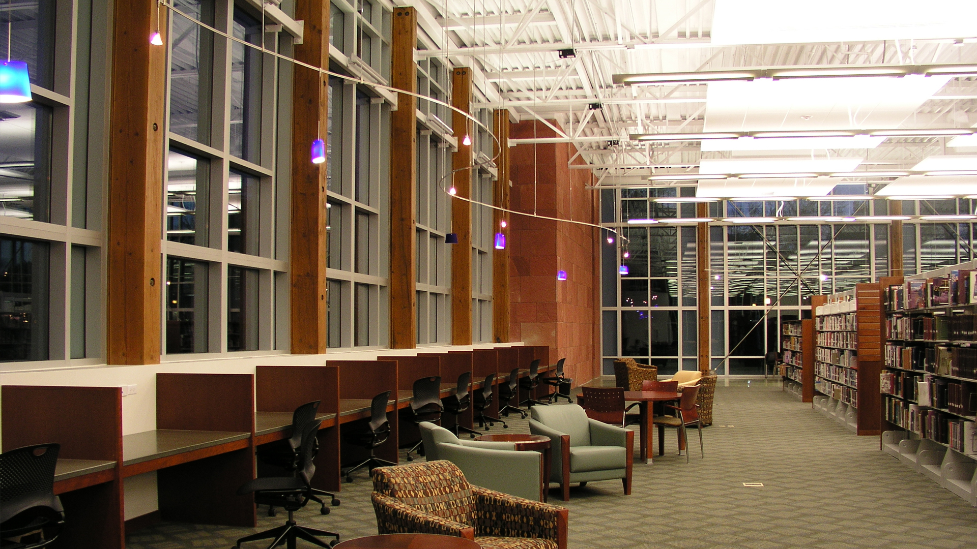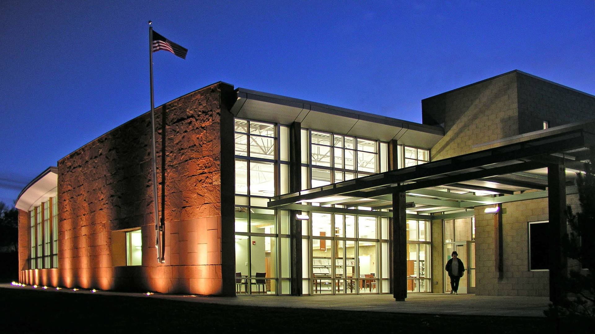 Sited to anchor an existing park, the 26,000 square foot facility was designed to allow for maximum flexibility and future growth with the capacity to house more than 80,000 volumes. The project location was part of a larger city plan to dedicate the area as a pedestrian-friendly civic corridor with the library acting as a catalyst for future development. The library offers a special collections room, a technology center, a large public meeting room and classroom space for promoting the English as a Second Language (ESL) program. Most notably, a dedicated children’s library has been incorporated which includes an adjacent craft area. The front entry court provides a public gathering space, while the general collection’s south terrace promotes interaction with the city park.