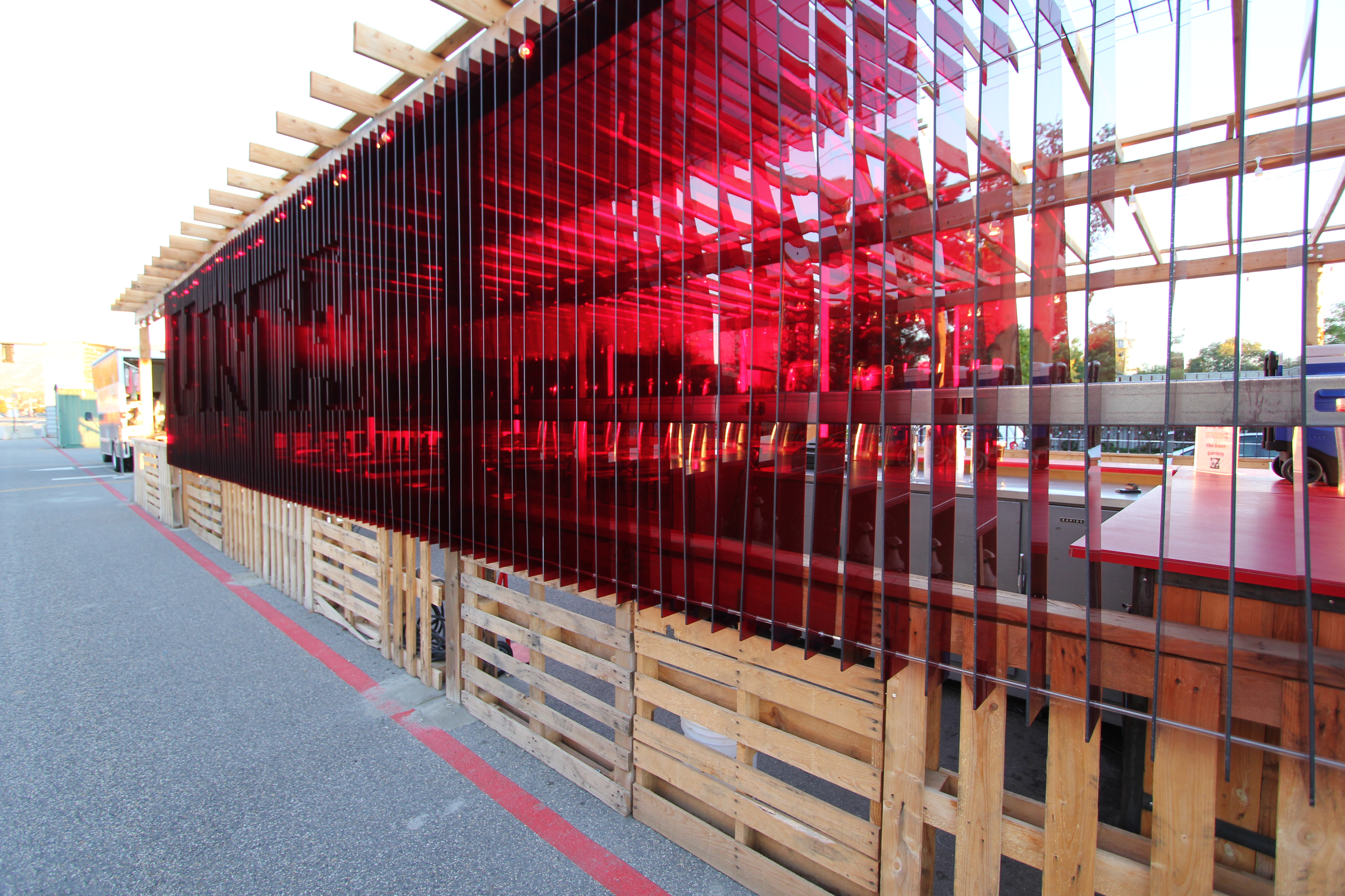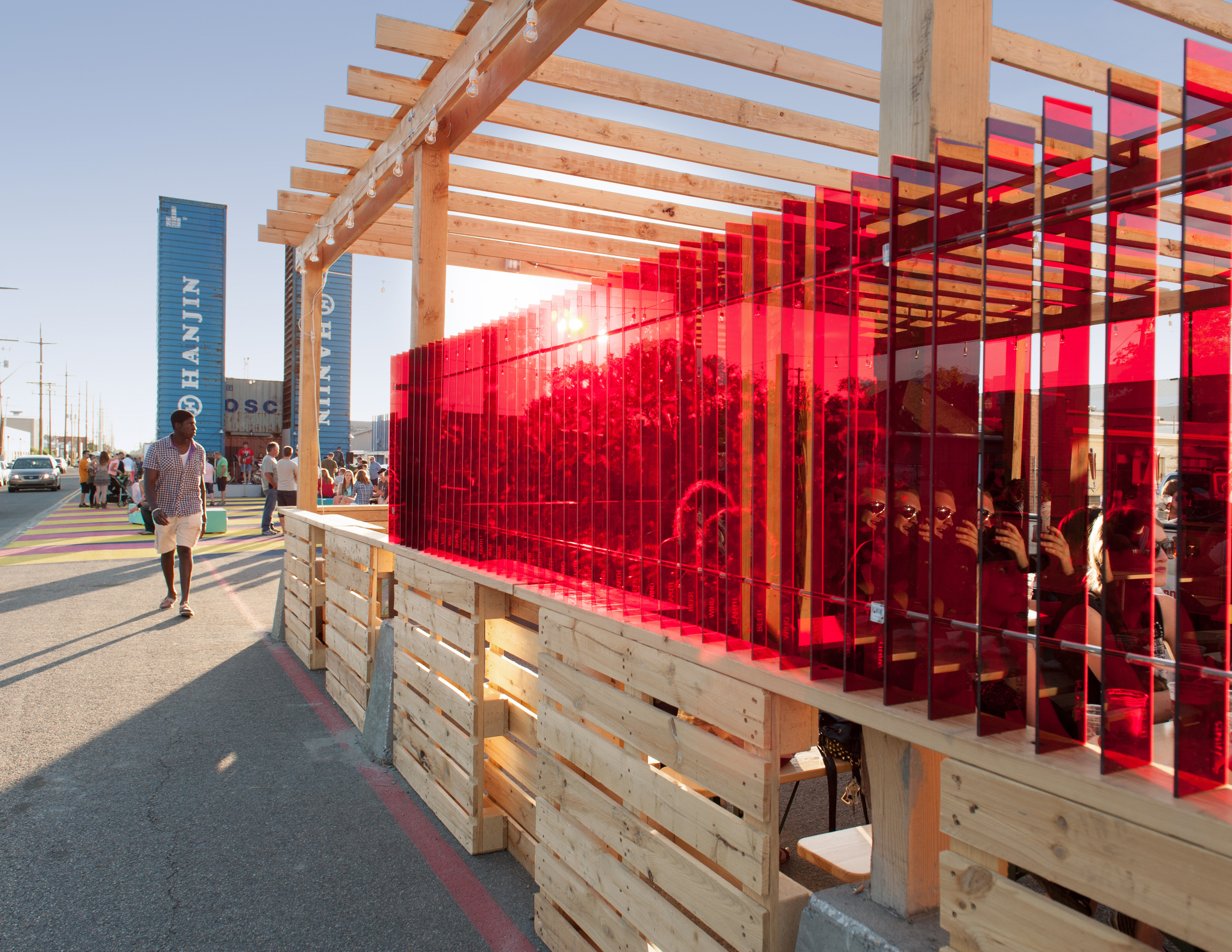 The architect assisted the developer in controlling cost by donating their own time in planning and design; furnishing and installing the components of the Beer Garden; and, repurposing affordable and donated materials like shipping containers, wooden pallets, and off-the-shelf acrylic.