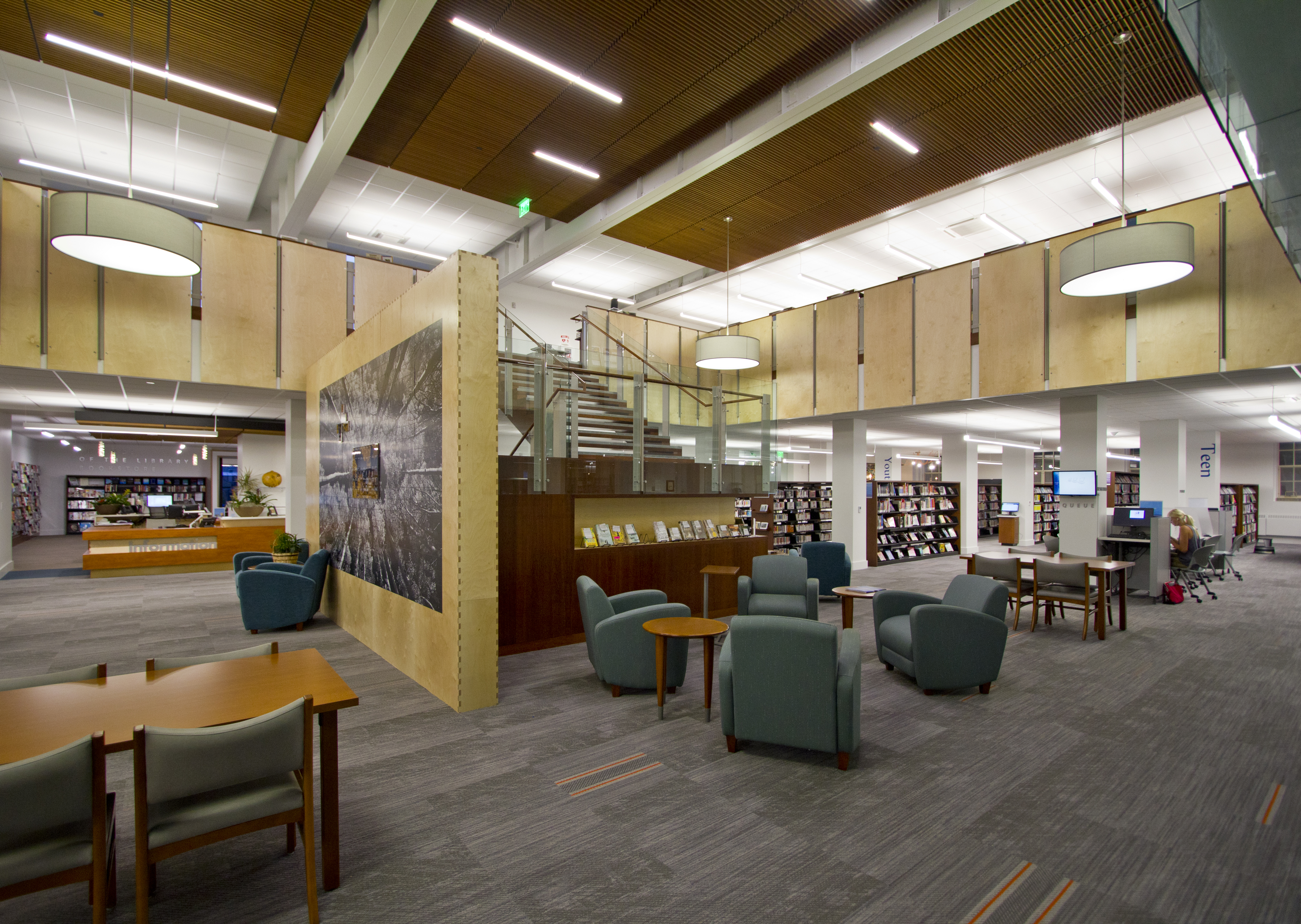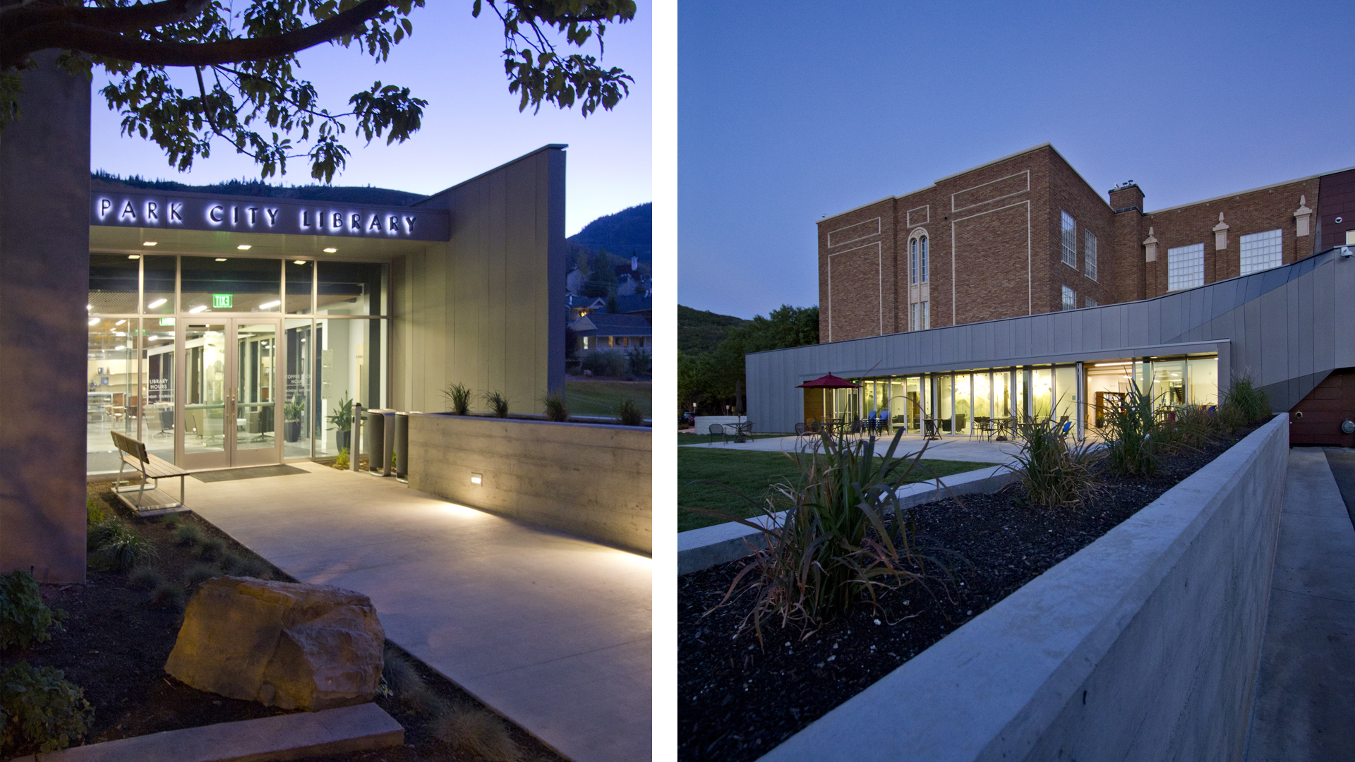 In 2013, Blalock and Partners was commissioned to design the renovation of the Park City Library. Originally constructed in 1928, the building first served as Park City’s High School and was converted into a library in the 1980s. The design team sought to expose the historic character of the building by stripping the layers of subsequent interior and exterior wall construction as well as expressing the beauty between the historic structure and a contemporary addition. This strategy was conceptually likened to bark peeling from a tree trunk. Additionally, roof lines of local structures were used as inspiration in determining the geometry of the addition. The project encompassed a complete renovation to the interior of the existing building, replacement of mechanical, electrical and plumbing systems to improve the functionality and efficiency of the entire building. Construction was completed in 2016, and the building achieved LEED Silver certification.