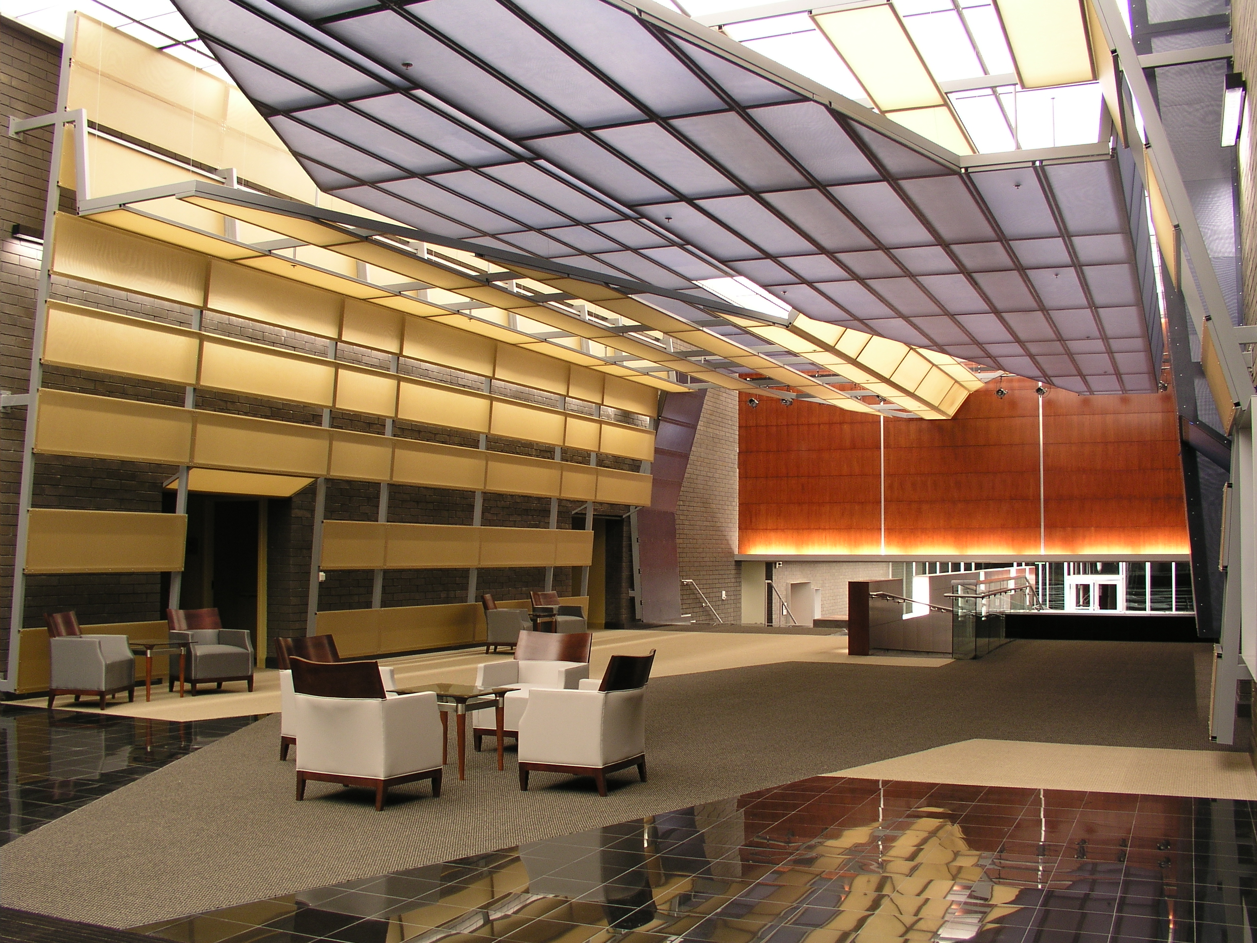 The project literally and figuratively links the College’s two performance programs; the Eccles Center for the Performing Arts and the Horne School of Music. A continuous “sound ribbon” weaves together the two primary venues, providing acoustic support at each location, and gracefully joining the facility together at the dynamic shared lobby. As the only live performance venue in the small, but vibrant community of Ephraim, Utah, the Center has a special role in further strengthening the cultural relationship between college and community.
